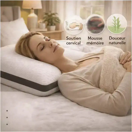 Nos oreillers sont conçus avec une forme ergonomique qui favorise un positionnement confortable de la tête et de la nuque pendant le sommeil. Leur structure permet d’accompagner naturellement les courbes cervicales pour offrir une sensation d’accueil agréable dès les premières minutes.